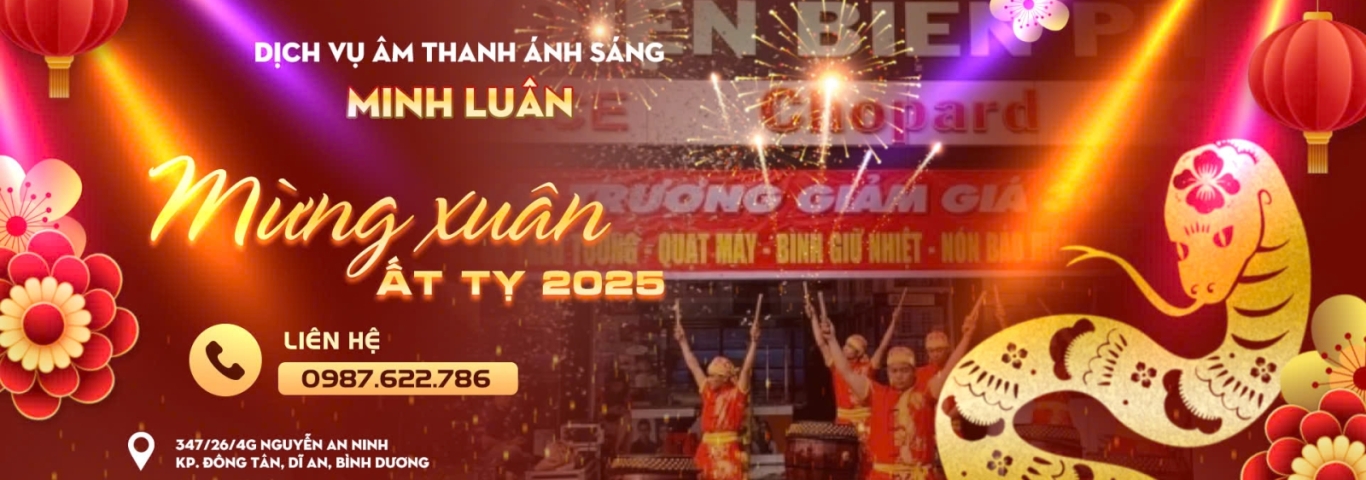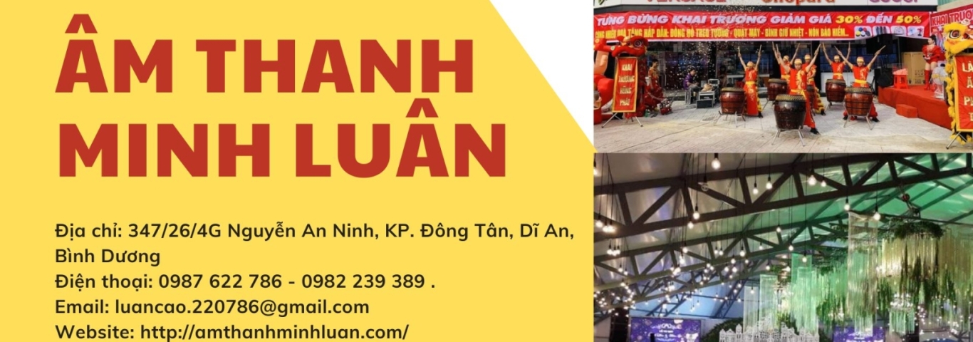Âm Thanh Minh Luân là đơn vị hoạt động trong lĩnh vực âm thanh ánh sáng, là một trong những đơn vị hàng đầu về cung cấp cho thuê âm thanh ánh sáng tại khu vực Bình Dương và các tỉnh thành lân cận như TP.HCM, Đồng Nai, Long An,…. Với hệ thống âm thanh ánh sáng hiện đại được nhập khẩu từ Mỹ, Anh, Đức và rất nhiều thể loại. Từ loa, amply công suất, mixer, equalizer, cossever, main công suất lớn, đèn pad led, đèn moving head, đèn beam, đèn follow, đèn pad 64, micro hiệu SHURE, SENNHENSER...v.v. Cung cấp cho thuê âm thanh ánh sáng cho những sự kiện từ nhỏ nhất đến lớn.